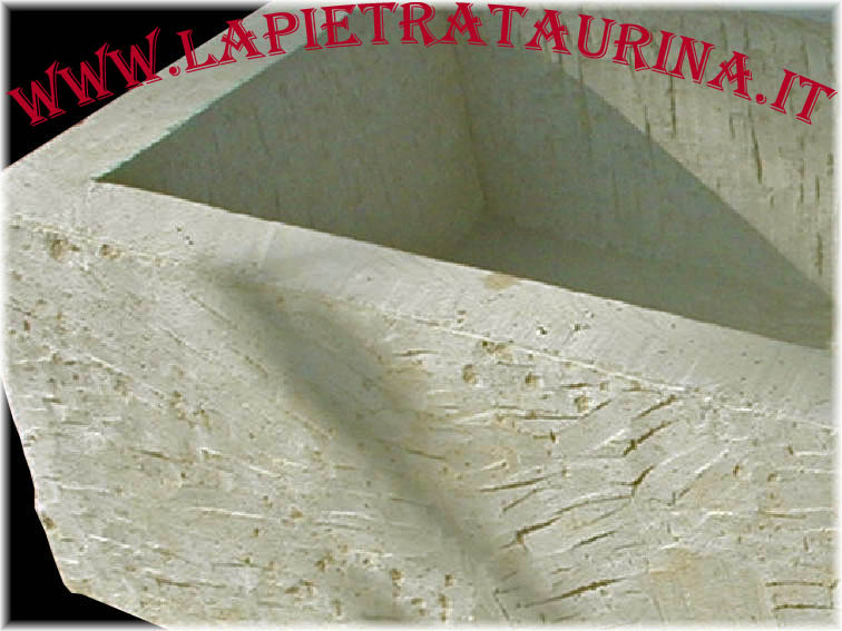 Tutta la parte superiore è realizzata con pietra taurina, i piedi sono in carparo rosso.