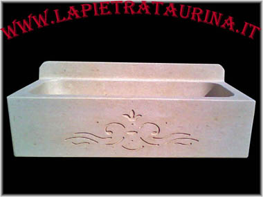 Lavabo in pietra naturale per l’arredo della cucina o giardino, stile classico, con il foro per lo scarico. Sul fronte e’ stato realizzato un bellissimo bassorilievo. Le misure non sono vincolanti in quanto i nostri prodotti li realizziamo interamente a mano e possiamo esaudire qualsiasi vostra richiesta.